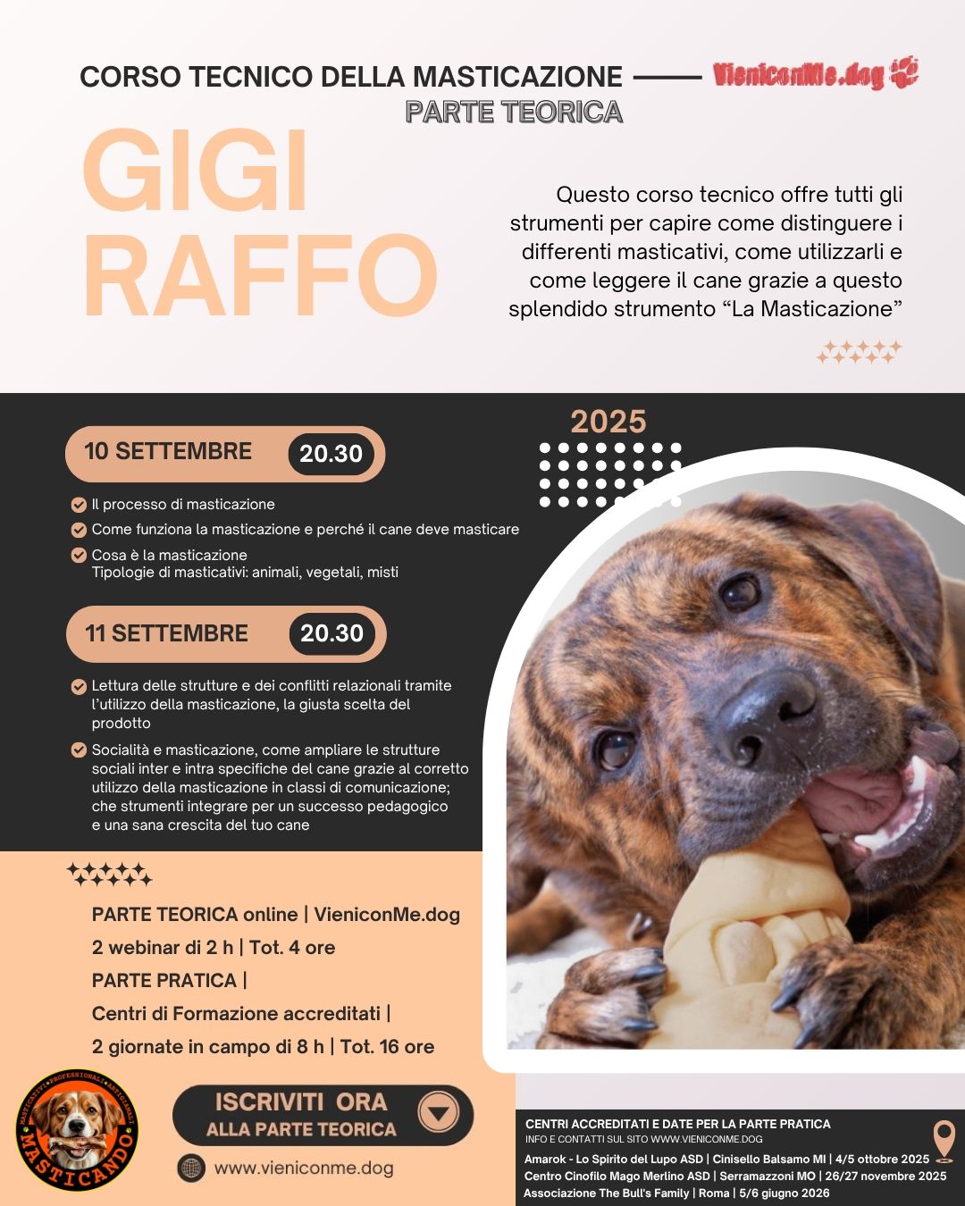 Prima serata svolta Mercoledì 10 Settembre | Il processo di masticazione, cos’è, come funzione e perché il cane deve masticare | Tipologie di masticativi | 20.30-22.30